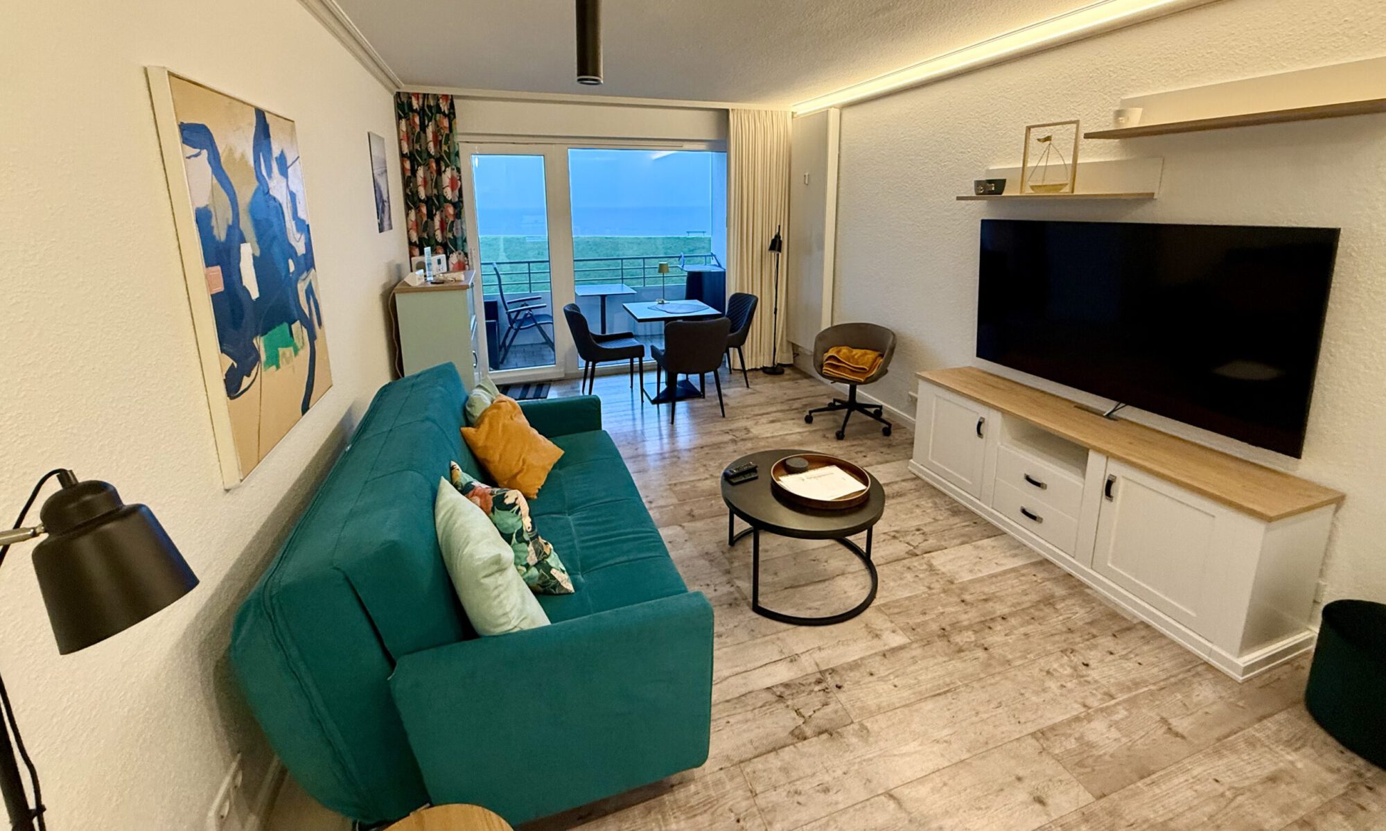 Komplett neu eingerichtet bietet die Wohnung alles für einen erholsamen Aufenthalt an der Nordsee. Mit Blick auf die Grimmershörner Bucht bietet die Wohnung bei jeglicher Wetterlage Erholung und Entspannung.